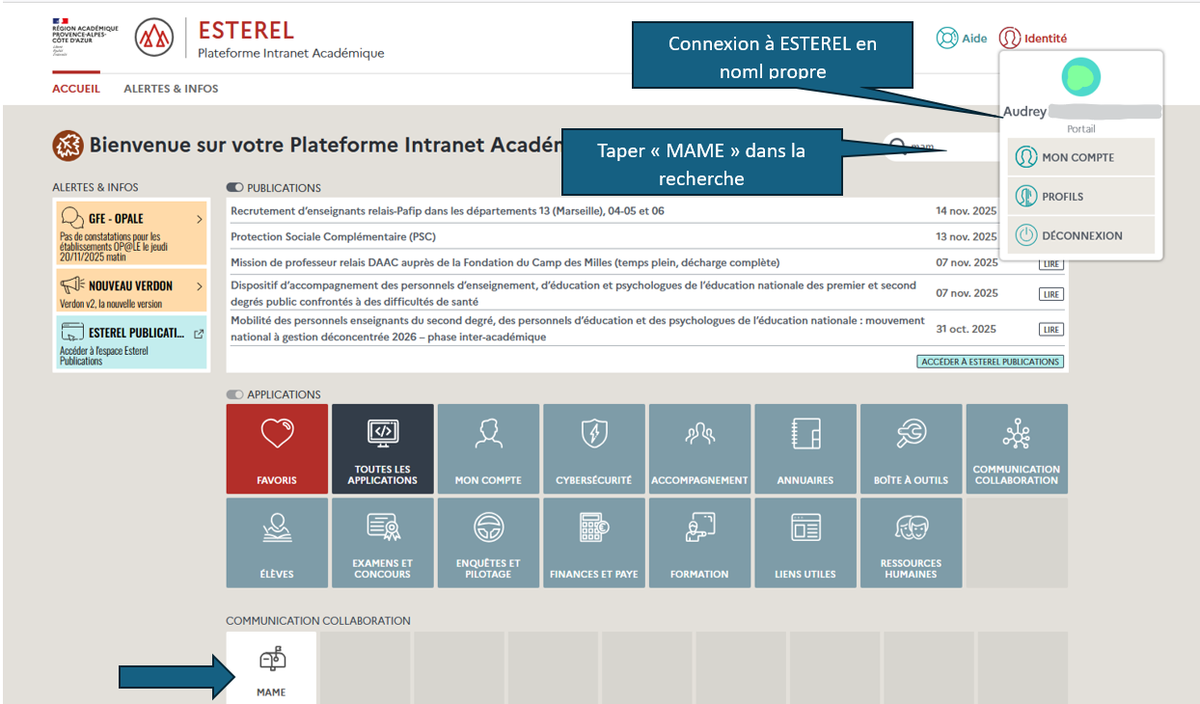 Déconnectez-vous ou changez de moteur de recherche internet pour vous connecter maintenant à ESTEREL avec les identifiant/mot de passe de l’EPLE :