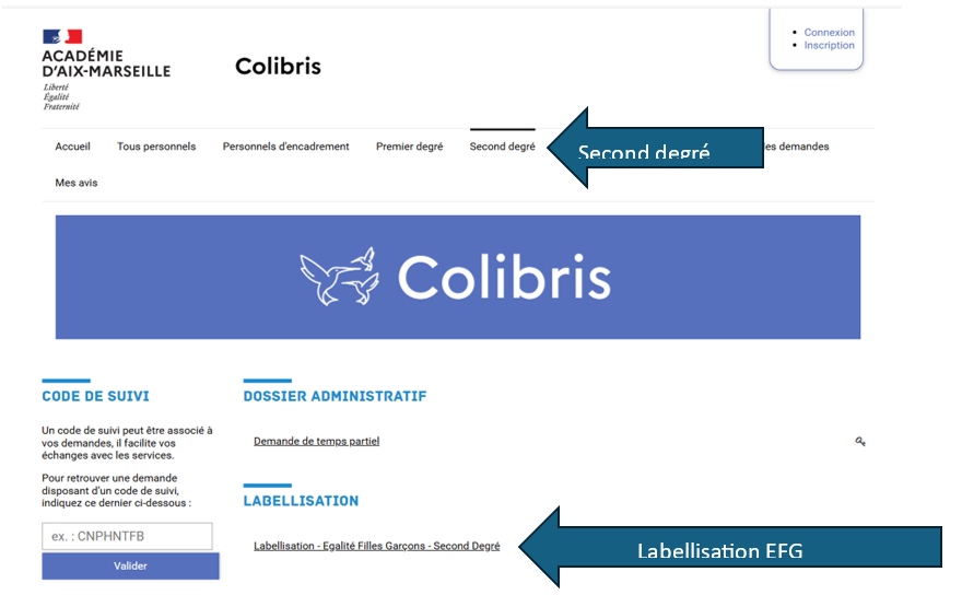 Accès COLIBRIS avec une adresse d'établissement